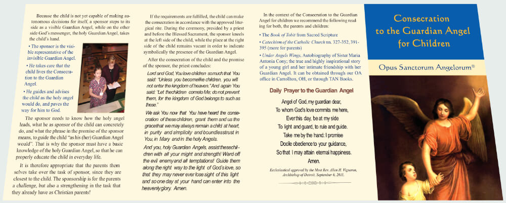 The sponsor needs to know how the holy angel leads, what he as sponsor of the child can concretely do, and what the phrase in the promise of the sponsor means, to guide the child “as his (her) Guardian Angel would”. That is why the sponsor must have a basic knowledge of the holy Guardian Angel, so that he can properly educate the child in everyday life.